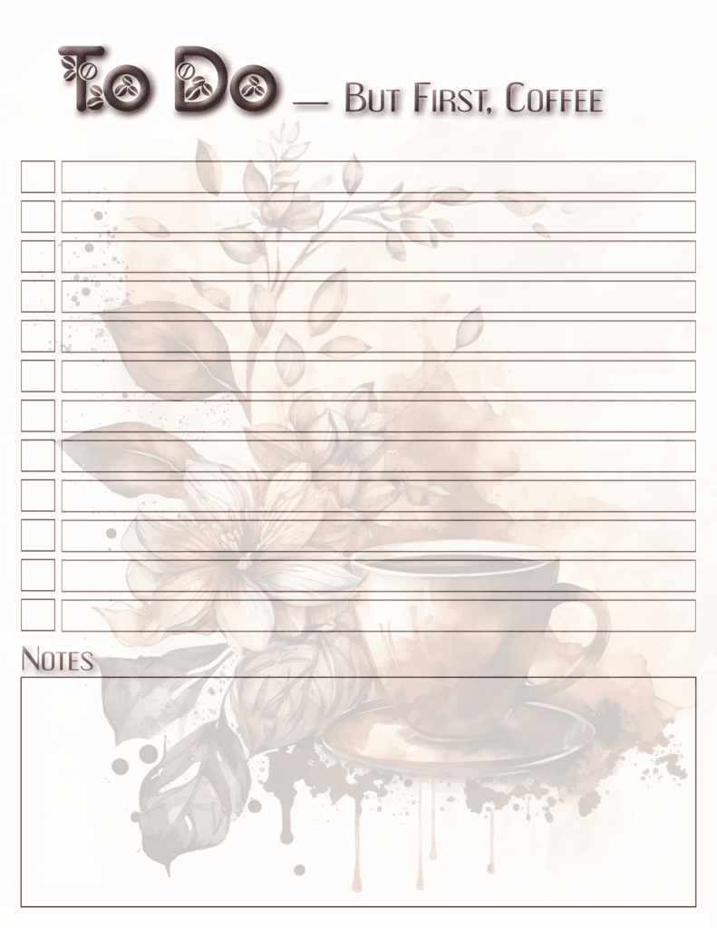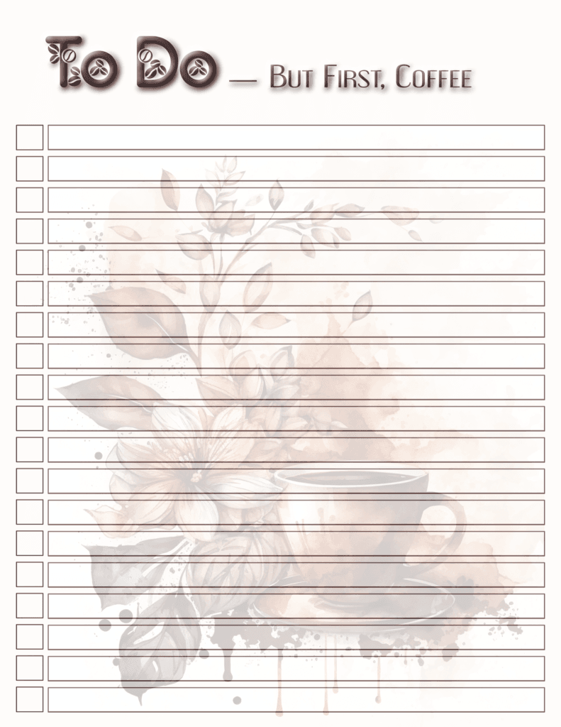 This week are happy to present to you our cute coffee inspired To Do pages. There are two pages total, each slightly different than the other.
