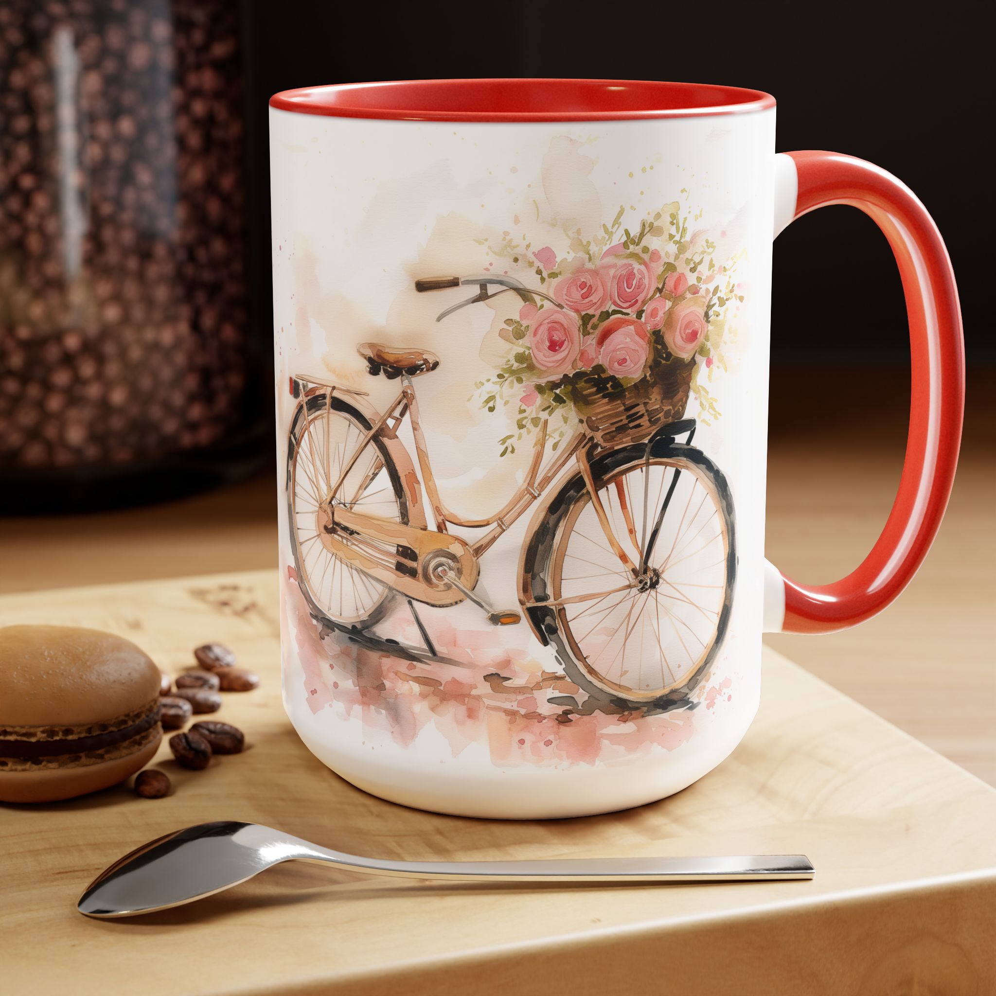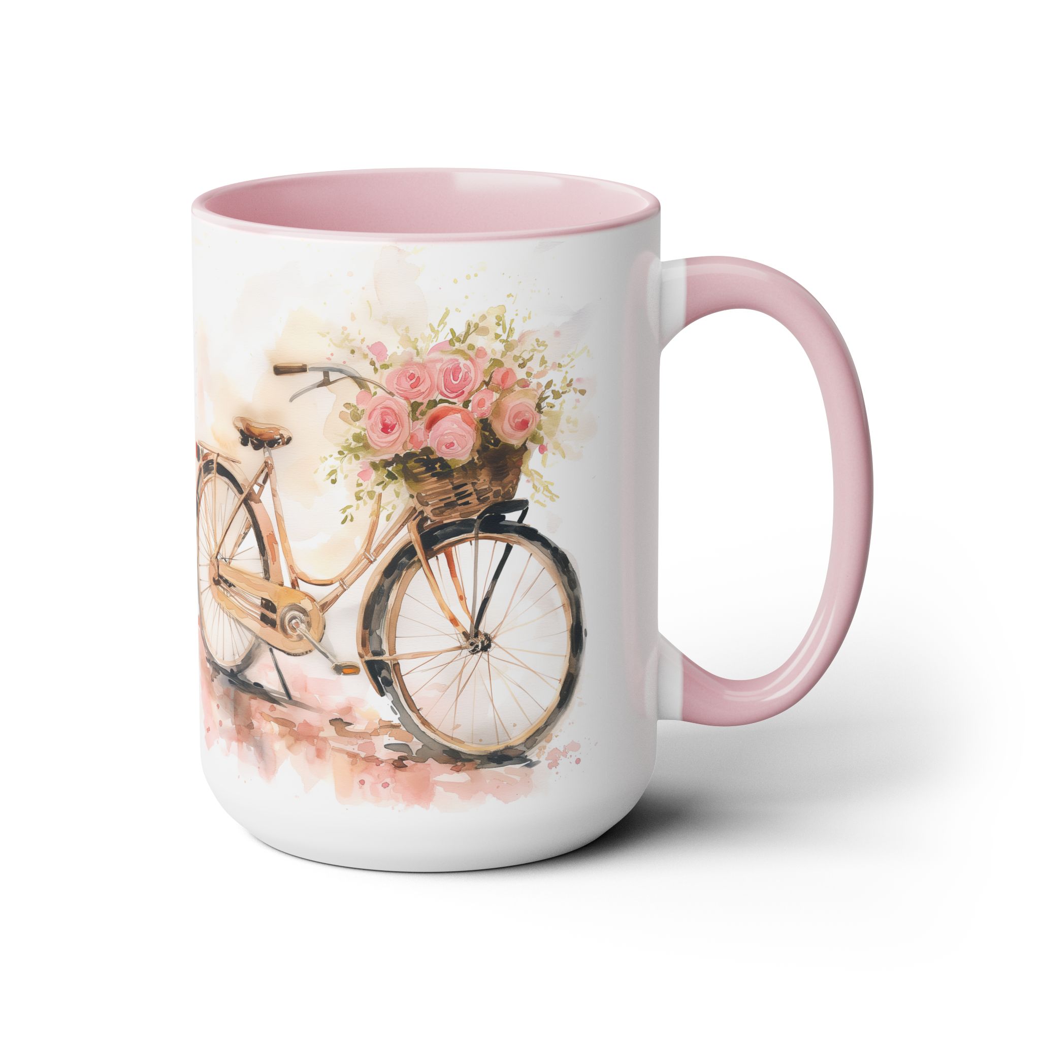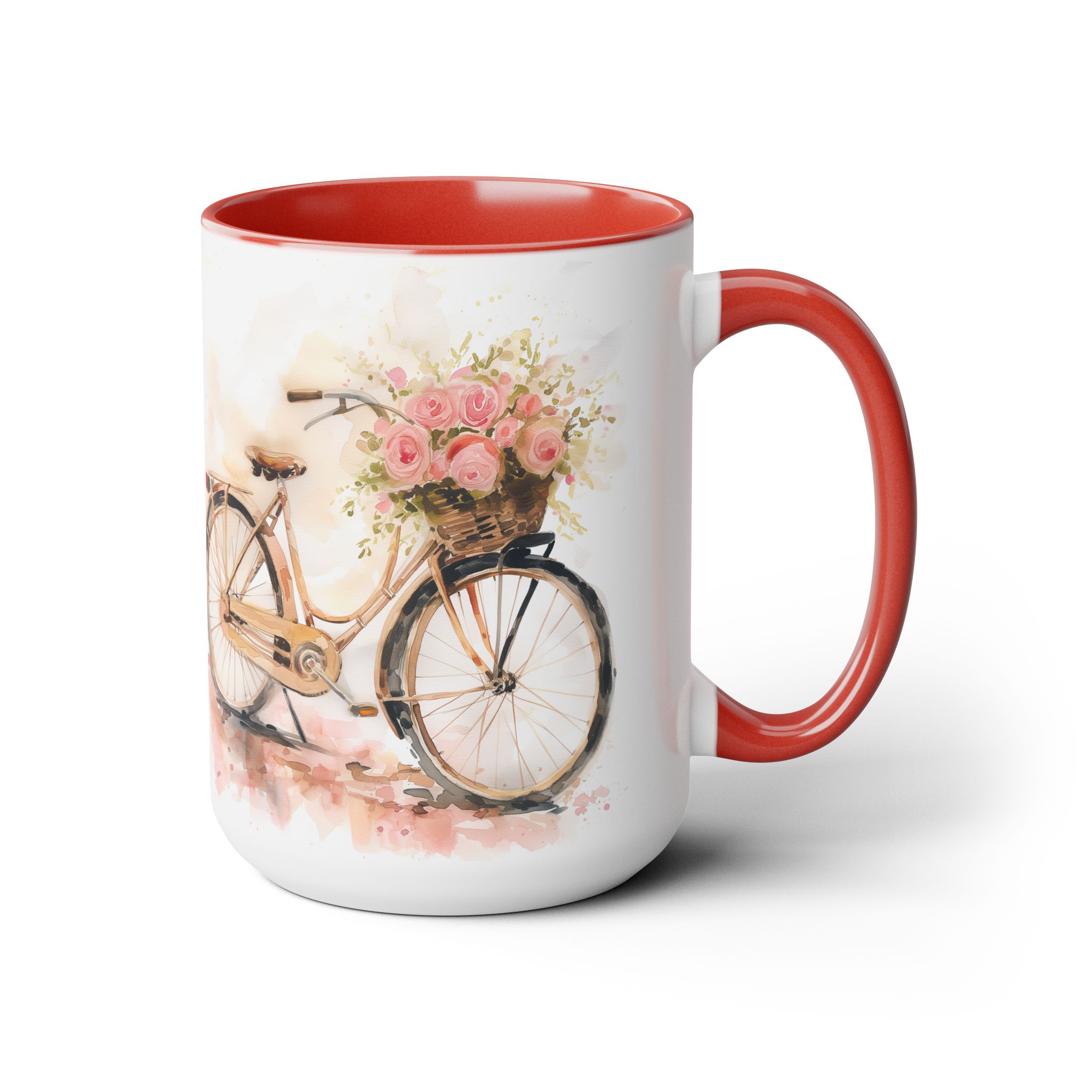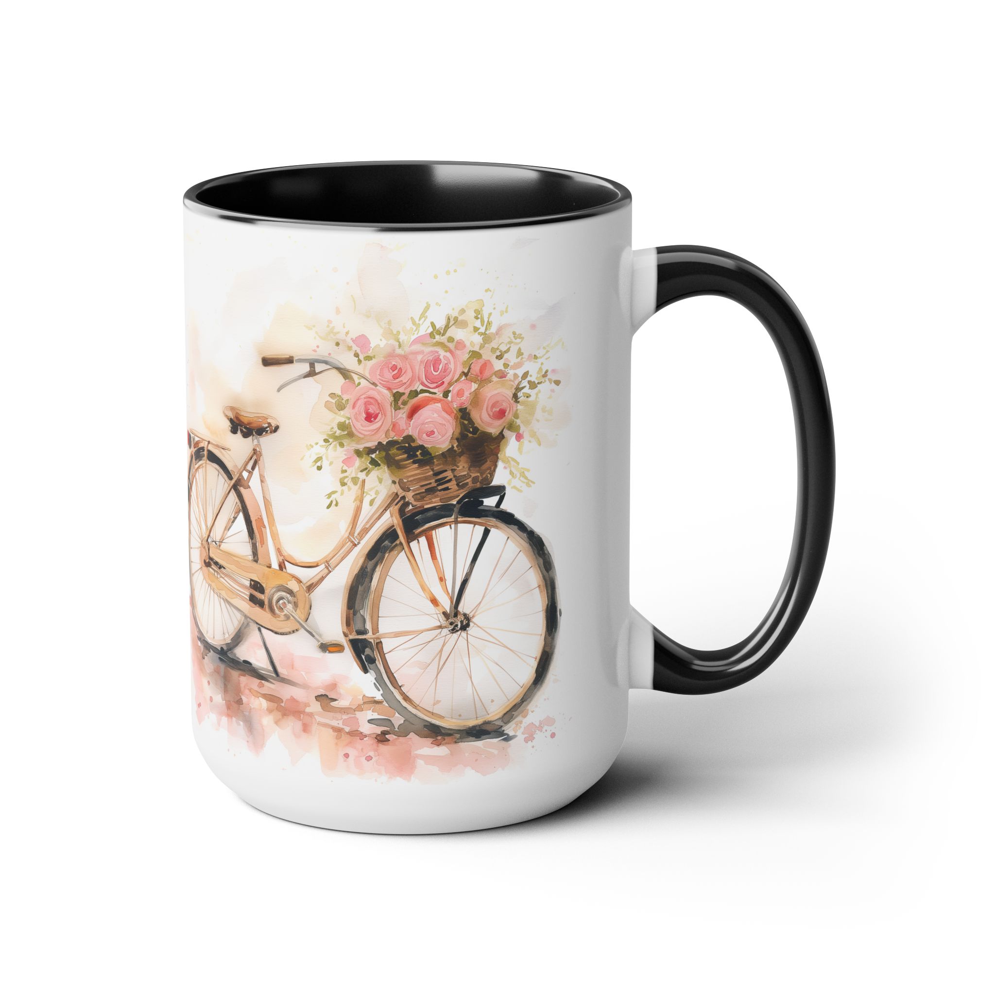 Just Keep Going Watercolor Bicycle Two-Tone Coffee Mugs, 15oz