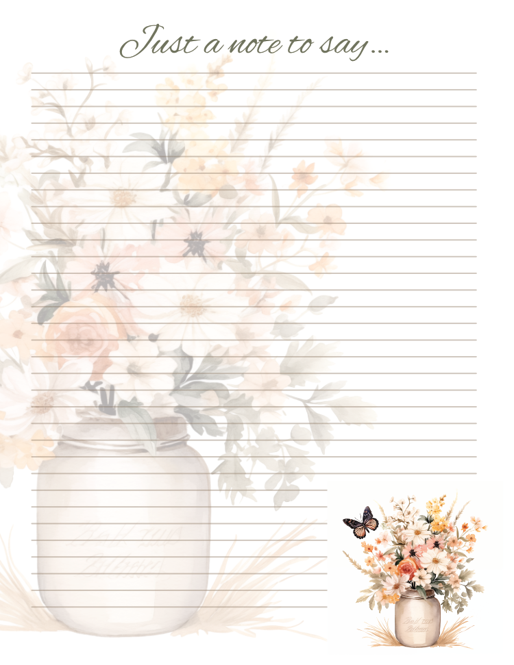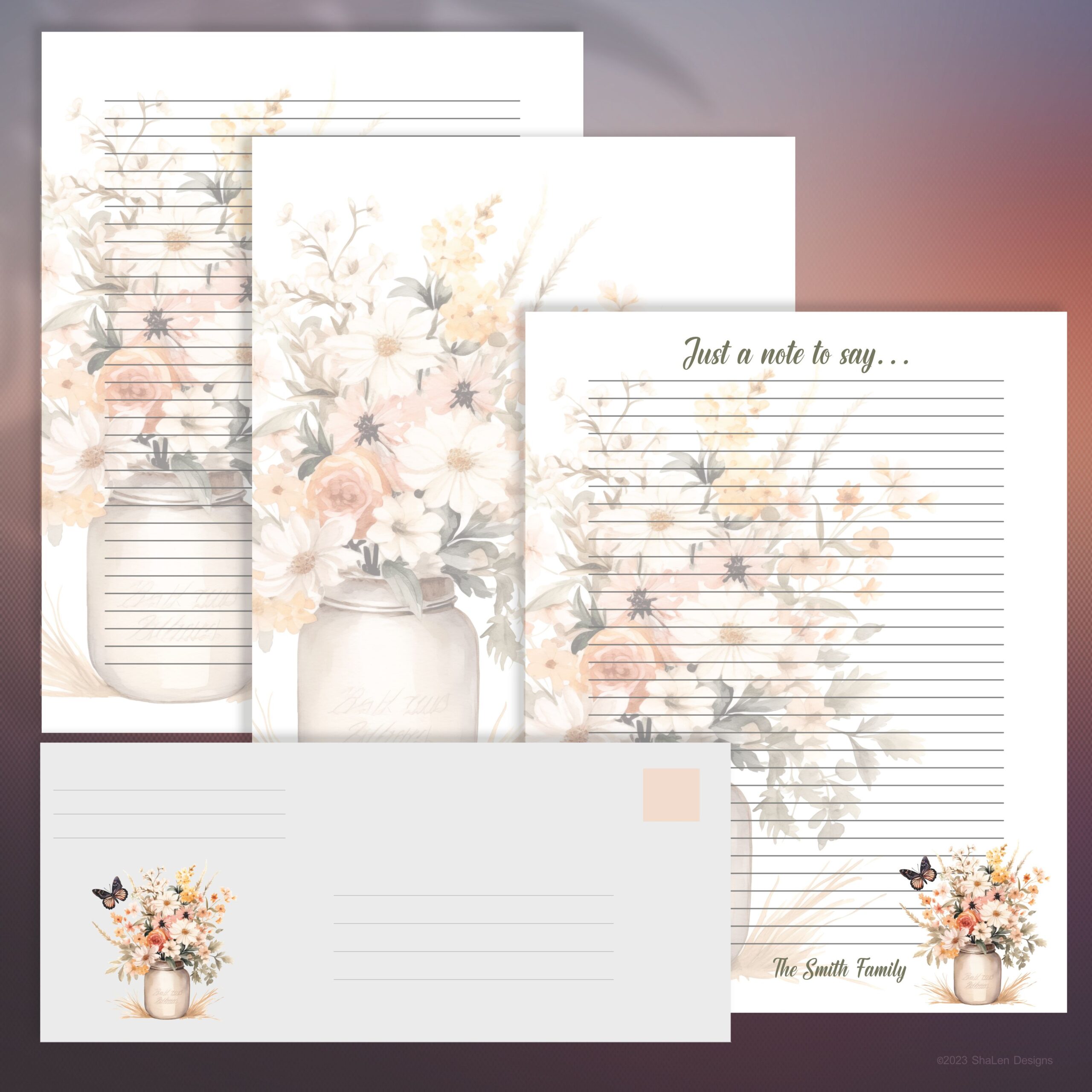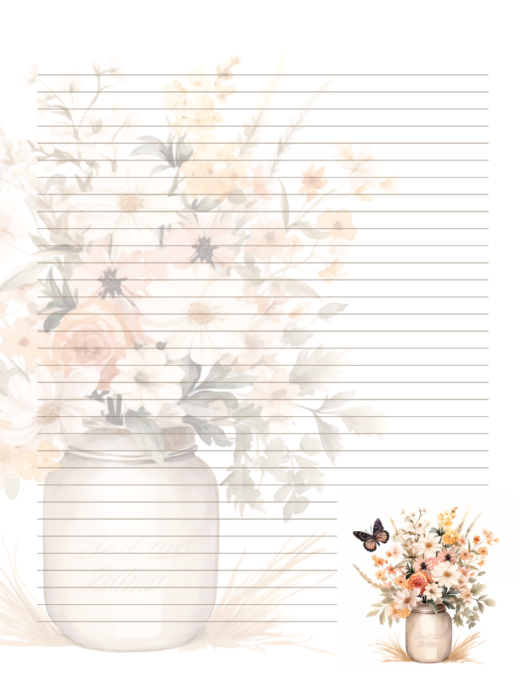 Introducing our Mason Jar Floral Stationery Set – Printable Lined & Unlined Pages with Matching Envelope